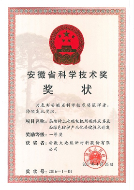Earth-Panda always insists on taking "scientific and technological innovation" as the foundation of the enterprise. Through independent research and development, introduction of technologies, transformation of scientific and technological achievements and industry-university-research cooperation, it has formed an advanced technological innovation system and core competitiveness of the enterprise and has attained many excellent achievements in preparation method, surface protection, processing and inspection and testing of rare earth permanent magnet products. The company has been licensed 148 patents and 54 domestic and foreign inventions, led the formulation of 1 national standard of Regenerated NdFeB Permanent Magnet Materials, and participated in the formulation and revision of 7 national standards such as Sintered NdFeB Permanent Magnet Materials. It has won one first prize, one second prize and one third prize of Anhui Provincial Science and Technology Progress Award as well as one first prize and one second prize of Technical Invention Award of the Ministry of Education, and won the titles of National Key New Products with 2 products, New Products of Anhui Province with 4 products and High-tech Products with 7 products.